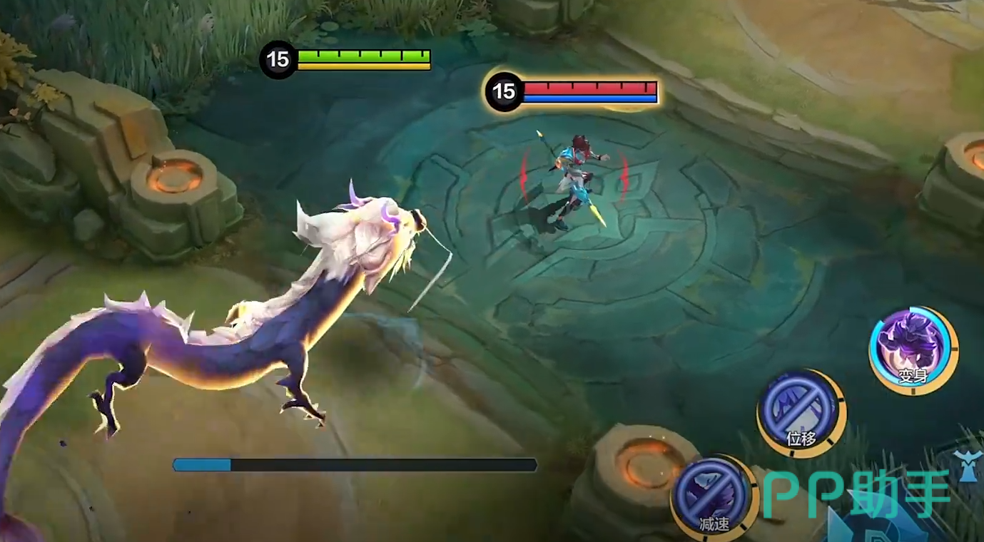 他的大招会让自己化作黑龙冲向战场,在这段时间内自身能免疫所有的控制和障碍物阻挡,且最大生命值提升,在横冲直撞的期间能击退每一个路径上的目标,并形成输出值,黑龙时间结束后自身会进入到持续10秒的龙人形态,此时各个技能的释放范围都会更大。