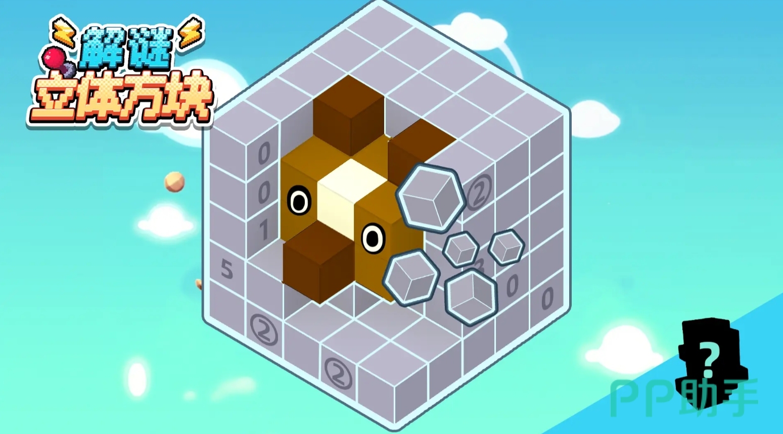 解开以方块为主的谜题,找出里面所隐藏的图案,是这部立体方块解谜的趣味所在。该作会在每关都给玩家一个不同形状的3D方块,它上面还会有各种线索提示,人们需根据方块上的提示和下方的黑色剪影,来推导出哪些方块是图案方块需要保留的,同时还要完成对方块的敲击,将那些与图案无关的方块统统敲掉,这样才能令隐藏的图案现出原形。