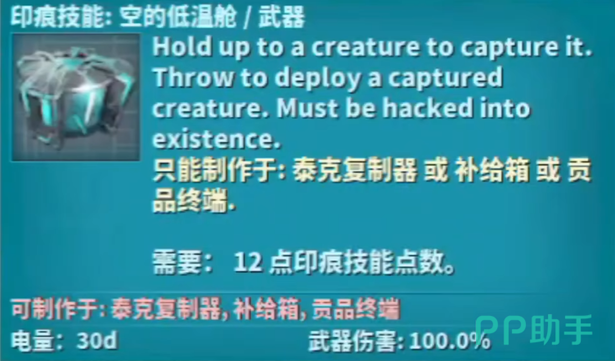 3、需要注意的一点事,如果仅仅是有一个仓的话,那么是无法正常使用的,因为重置版的和端游版本是有一些区别的。重置版的是需要用到低温冰箱来进行充能的,因此玩家还需要制作一个冰箱,或者是使用代码刷出来一个才行。