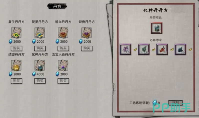 要炼化神丹,首先需要获取炼制的丹方。丹方可以直接前往永吉城的工坊购买,只需花费4000灵石即可。灵石不够怎么办?没关系,可以去刷副本或跑商积累灵石,这些都是修仙路上最基本的经济来源。拿到丹方后,记得仔细查看上面所需的配方材料,为后续的炼制做好充分准备。