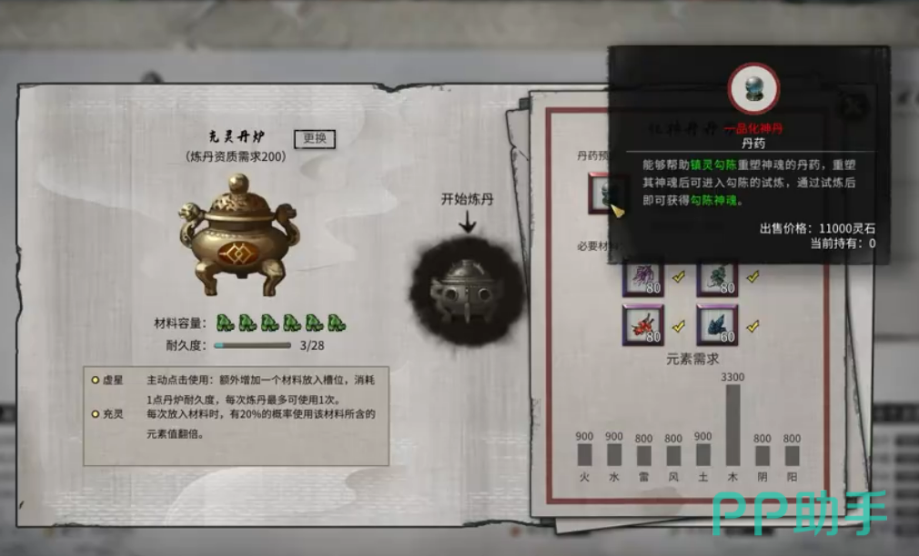 材料备齐后,就可以开始炼丹了。炼丹时,选择一口好的丹炉尤为重要。建议去宗门花费奉献度购买高级丹炉,因为低级丹炉很容易导致炸丹,既浪费材料又浪费时间。接着,将准备好的材料按照丹方投进丹炉,正式开始炼制过程。这里需要注意的是,炼丹的成功率还与角色的丹药资质息息相关。如果角色的丹药资质太低,炼制高品质的化神丹将变得非常困难。这种情况下,可以通过击杀各州城市中的丹魔,获取提升资质的丹药书,从而增强炼丹能力。