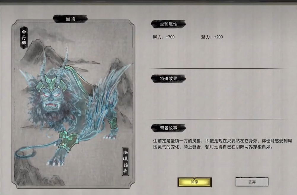 选择获得坐骑这个选项,会直接送你一个金丹期坐骑,自带炫酷的外观和战斗/移动加成效果。这个选项特别适合对坐骑有执念的小伙伴,毕竟新坐骑的外观和移动速度提升让人爱不释手。而且,这还能让你修仙路上跑得更快、更远,体验直接拉满。