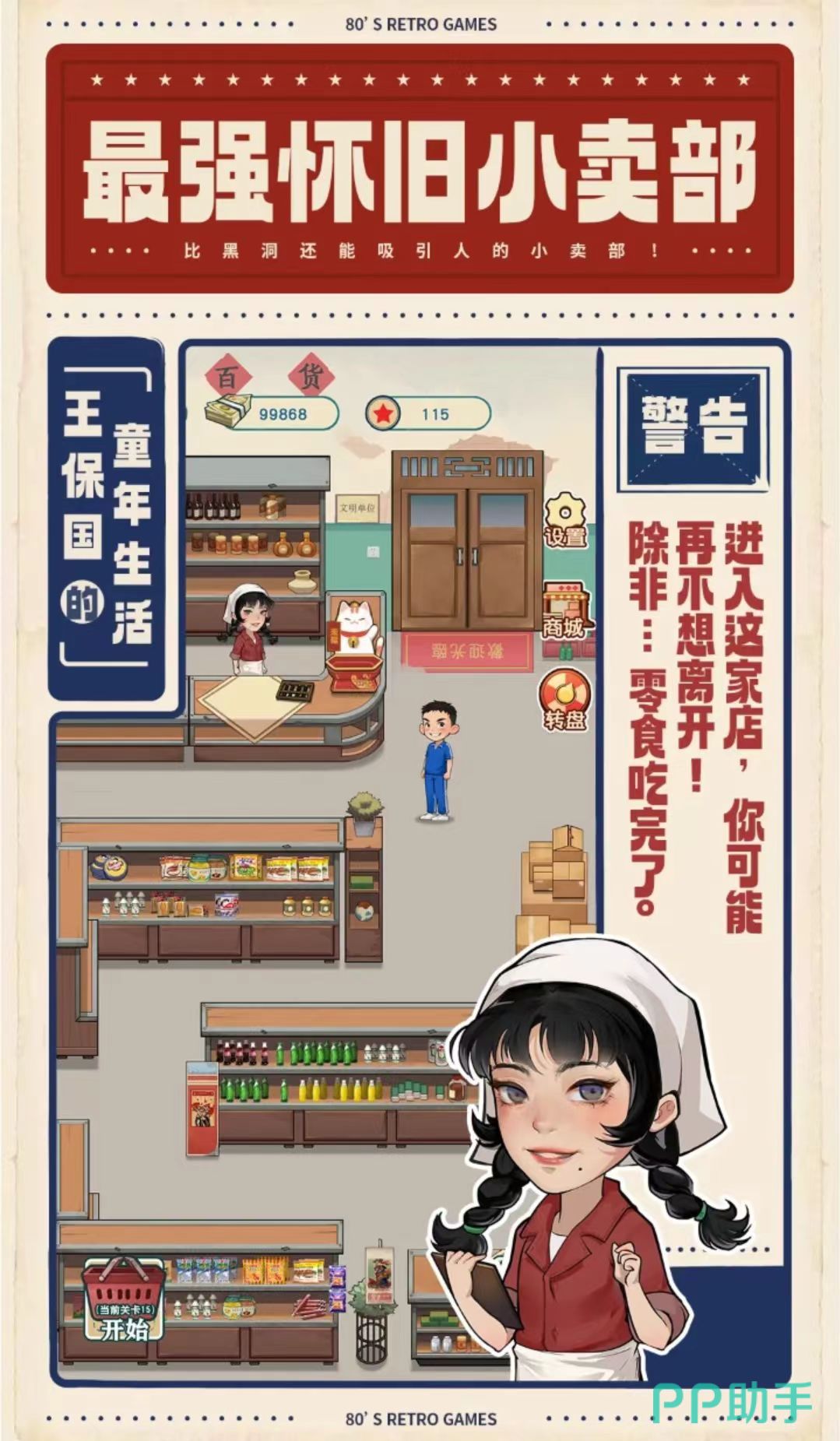 《王保国的童年生活》这款游戏中玩家扮演王保国这个小男孩的角色,和他的家人一起将家族小卖部扩大经营。游戏的画风是非常具有年代特色的,各种出售的物品和零食都能勾起玩家的童年回忆,除了小卖部的经营玩法外,还有邻里日常来帮助玩家了解那个年代,整体游戏设计的非常悠闲,很适合用来打发时间。