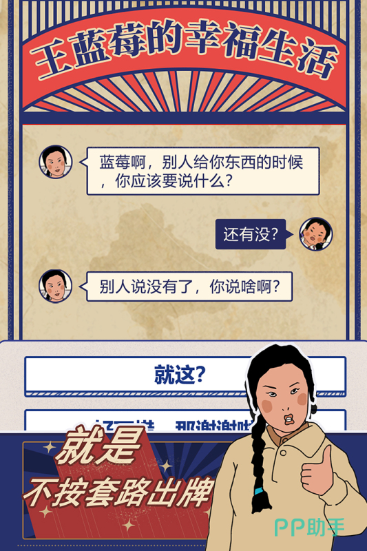 《王蓝莓的幸福生活》是一款受到众多玩家喜爱的年代游戏,在游戏中玩家扮演少女王蓝莓一角,在以聊天为主要玩法的游戏中和亲朋好友斗智斗勇,逐渐融入并获得成长。游戏中的王蓝莓语录令人啼笑皆非,多种对话场景可供玩家体验,游戏中还有非常简单的放置经营玩法,在搞笑的层面又融入了一些日常生活经验。