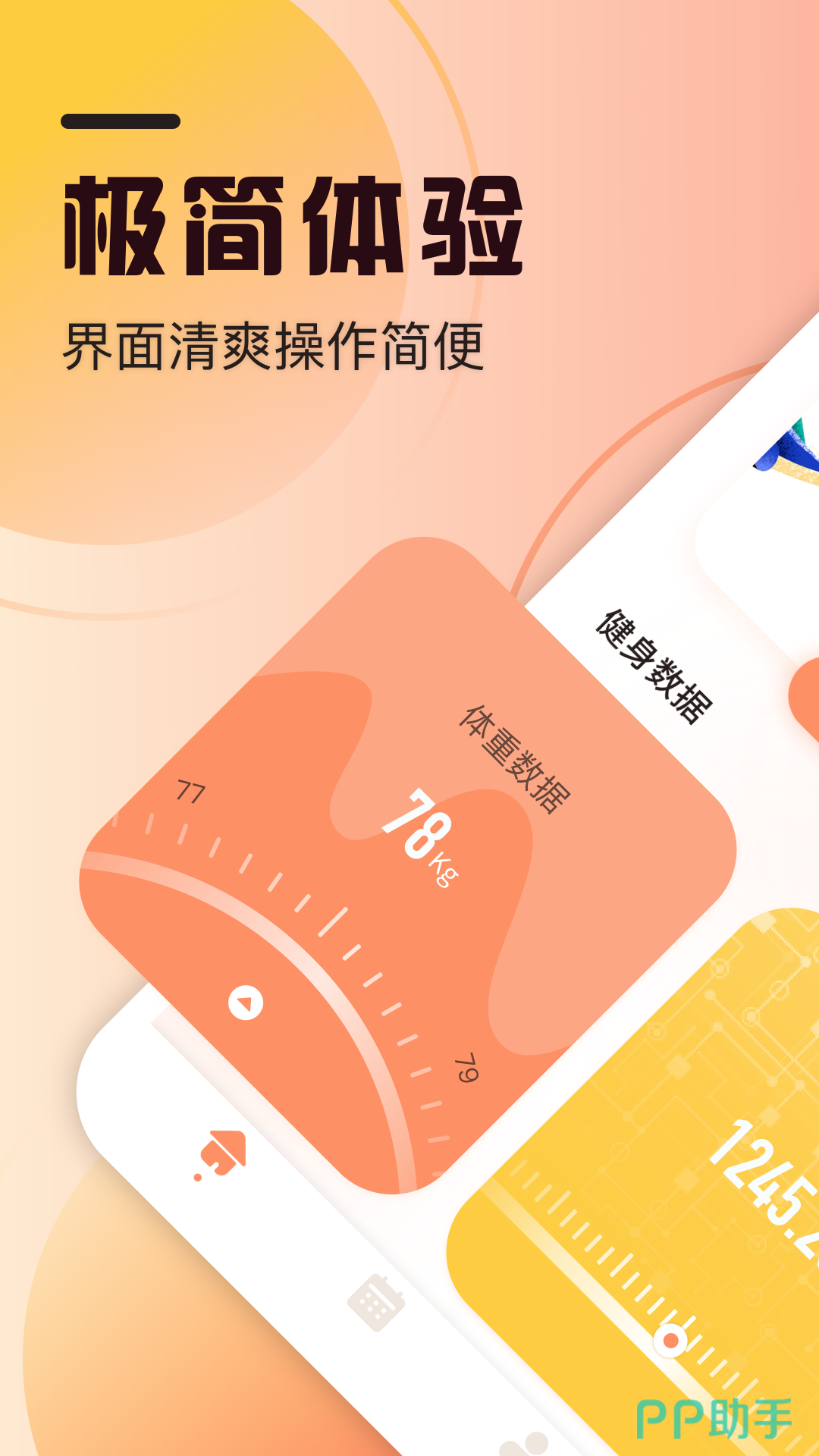 简约风格的运动小程序不仅能记录身体各项数据,比如心率、体重、腰围、进食卡路里、自拍照,还能打卡健身,按照日历模式展现健身成果,直观发表图片和数字健身成果,发布清晰健身变化趋势图。