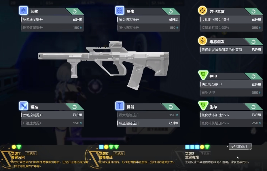 她的被动技能是利用主武器对敌方造成毒素伤害,一般来说一次命中消耗对方20点血量,点亮天赋的话能有增幅。