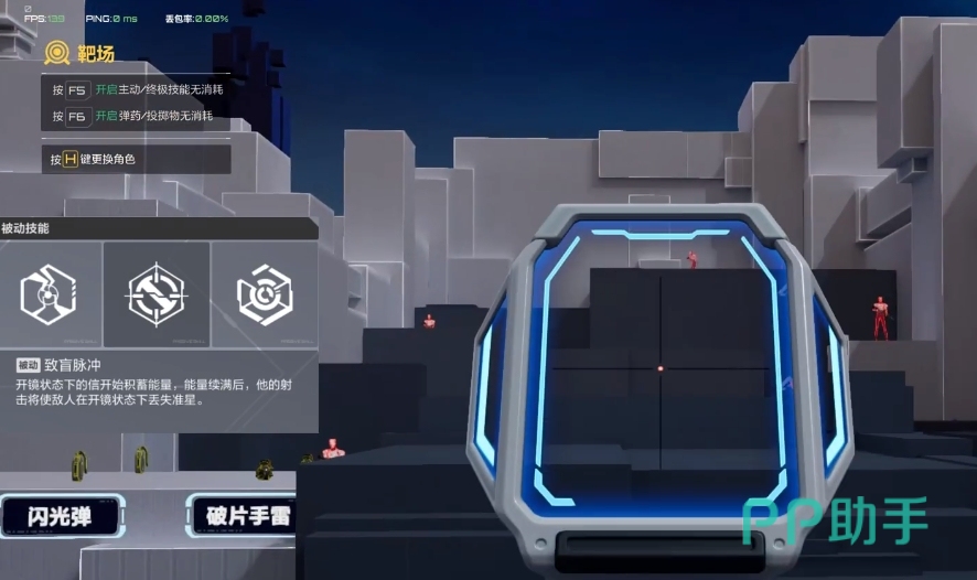 他的被动技能是人机瞄准,当边上的进度条满时可以破坏敌方的瞄准镜,而且在这个敌方瞄准阶段玩家还能进入弦化状态可以进行传送,这对于突袭敌方来说是个很好的技能。