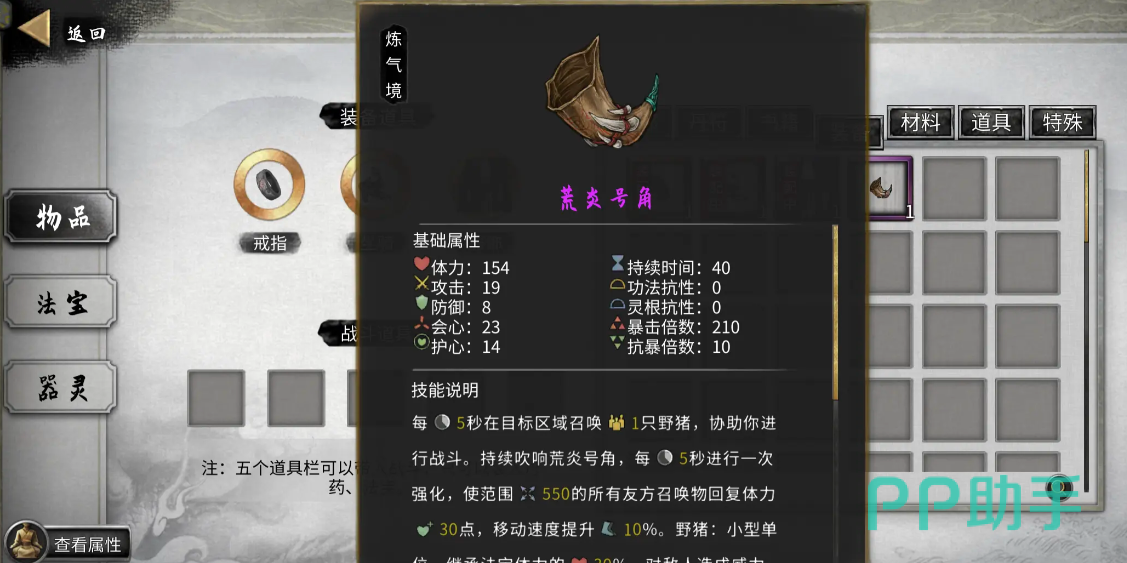 首先,制作法宝主要通过工坊炼制或自行炼制来完成。大家需要获取炼制法宝所需的材料。这些材料可以通过击败普通怪物、在陨幽谷或各大区域挖矿,以及击败区域BOSS来获得。例如,荒炎号角需要遗骸和灵植类材料,斩雷晶锤需要矿石和残器类材料等。