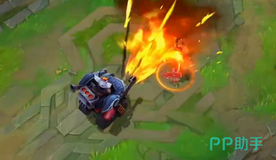 他的第三个技能会发射出鱼叉对目标形成魔法输出的同时还会形成减速效果,超频下减速和输出提升,他的大招是发射出一枚飞弹,对命中的敌人形成魔法伤害,在命中区域内留下会持续燃烧的火焰,对区域内敌人形成持续输出值。