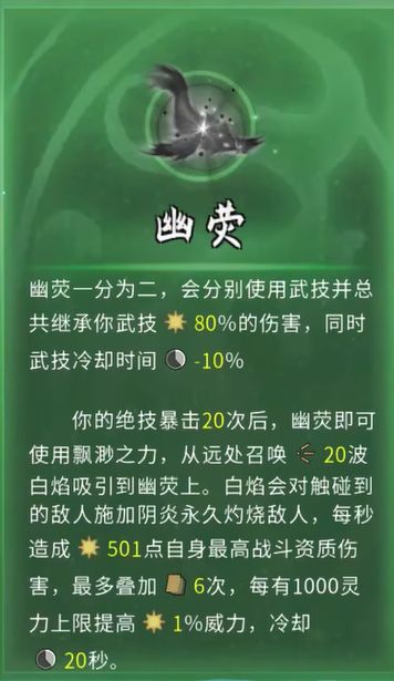 至于幽荧,它主打移动速度和暴击伤害。如果你是一个喜欢跑得快、打得狠的高机动玩家,可以考虑幽荧。不过它的输出稳定性不如孔雀,更多依赖暴击率触发,操作难度也相对较高。最后是灭蒙,听名字很霸气,实际上也不错,暴击率和技能伤害提升非常亮眼,适合技能爆发型玩家。但整体表现还是比不上孔雀来的全面。