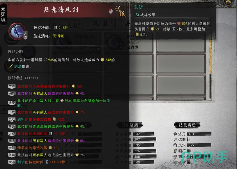 剑灵流绝对是许多剑修玩家的首选,因为它拥有清怪如切菜的体验,尤其适合喜欢爽快推图的小伙伴。核心搭配思路是以【剑灵精通】为主,通过叠加灵根效果来最大化输出。推荐的技能搭配有剑灵入门、剑灵进阶、剑灵精通、兵刃专精和黄巾天师。这套玩法的优点在于全程自动攻击,不费操作,小怪清得非常快。同时,这套流派没有灵气消耗,哪怕资源匮乏的情况下也能轻松输出。不过需要注意的是,后期成型后虽然攻速很快,但在面对高血量的BOSS时可能显得有些乏力,主要靠频率取胜。