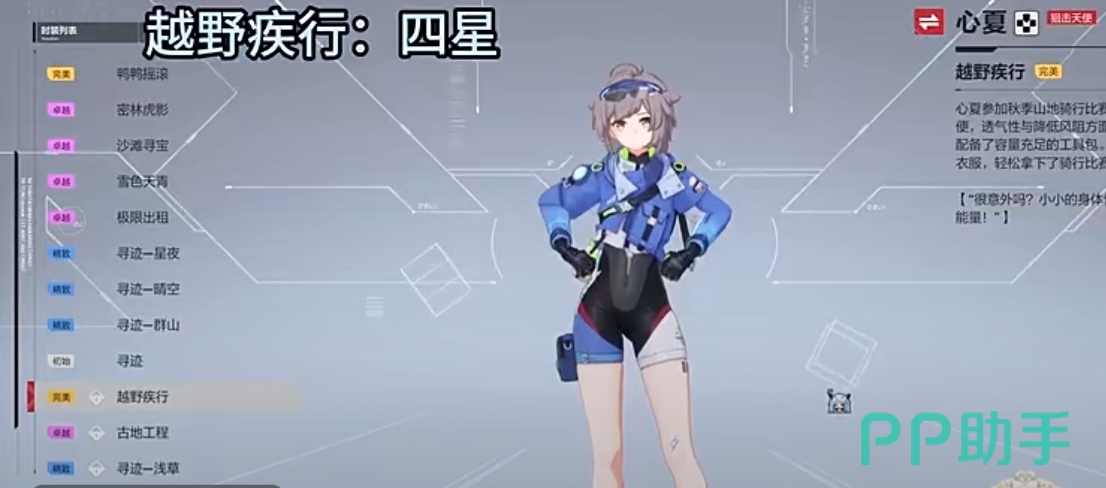 这个皮肤是心夏去参加骑行比赛时的穿着打扮,这是一套比较适合秋日的皮肤,衣服整体极为贴身,而且衣服还极为轻便,它有着良好的透气性,穿上它在去比赛时可以通过降低风阻的方向而获得优异的成绩。