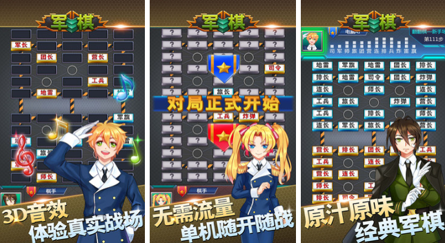 游戏采用简约的卡通风格,结合经典的军棋玩法,为玩家带来独特的指尖乐趣。游戏支持四人竞技和双人对决两种模式,四人模式为两队对抗,双人对战则分为明棋与暗棋,每种玩法都深受玩家喜爱。如果你热爱军棋,渴望在游戏中找到实力相当的对手,那么不妨下载这款游戏试试。
