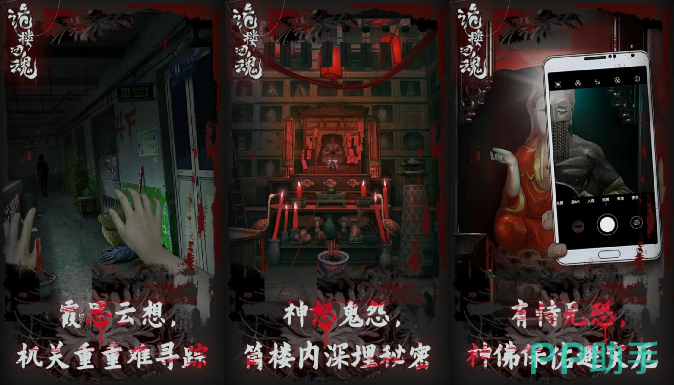 《诡楼回魂》游戏里面的角色是一名小说家,收到了朋友的一封信来到了一个非常诡异的楼里,充满了黑暗和阴森恐怖的氛围。需要在每一个房间中寻找能用到的线索,道具和物品会在游戏下方收集,争取寻找蛛丝马迹来破解谜题。游戏中会随时的出现恐怖的灵魂,在场景里面的找到线索可以收集起来,在找不到线索的时候,可以通过和角色的交流获得线索。