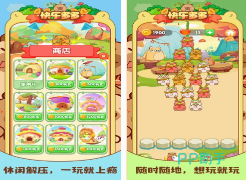 这同样是能让你看到卡皮巴拉的,里面的数量特别的丰富,会让你置身于充满着温馨常见的森林里。动物们之间每天都会享受欢乐,也是为什么叫做快乐多多的主要原因。通过帮助可爱动物按照顺序跳到河边石头上的方式,就可让他们拥有更多的食物以及玩的场所,属于一款玩法比较简单,也需要了解相应方法的。