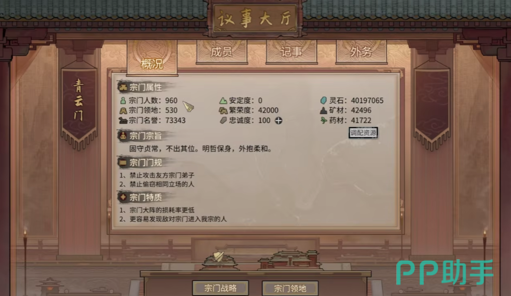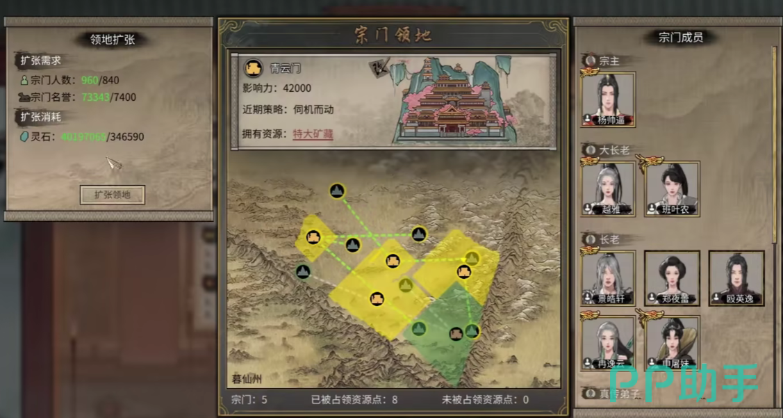 第三个需要玩家注意的地方是,宗门的攻打方向,对于正派宗门而言,一般来说都只能攻打邪教宗门,但实际上游戏当中的邪教宗门是不多的,玩家全部攻打完毕时,就只能够攻打邻近的正派宗门了,此时玩家可以主动和这些宗门结仇,最终让其他的宗门主动打上门来即可。