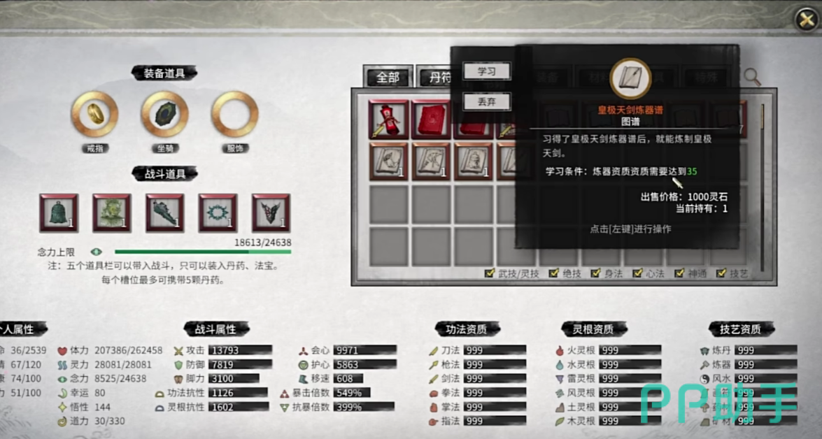 第二种方式是游戏当中最为稳定的一种方式了,那就是玩家通过开启宗门玩法,进入到宗门的炼器室当中,通过消耗指定的材料,来炼出法宝,这种方式需要消耗玩家的法宝蓝图,还需要消耗一定的材料,整体的流程是比较长的,但玩家可以自行的选择所需的buff词条,操作起来较为稳定。