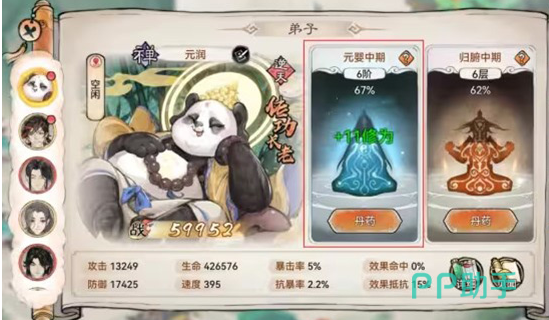 玩家就需要从零开始慢慢的去创建宗派,然后打造一个修仙之路,游戏中的角色选择比较丰富,例如有抗伤害能力比较出色的熊猫元润,这就是一个热门的选择。一旦区域在解锁之后就可以让弟子来到这边游历最终就可以获得奖励,除此之外还会有创意的建造玩法,还有种田玩法可以在无形之间增加游戏的多样性和趣味性。