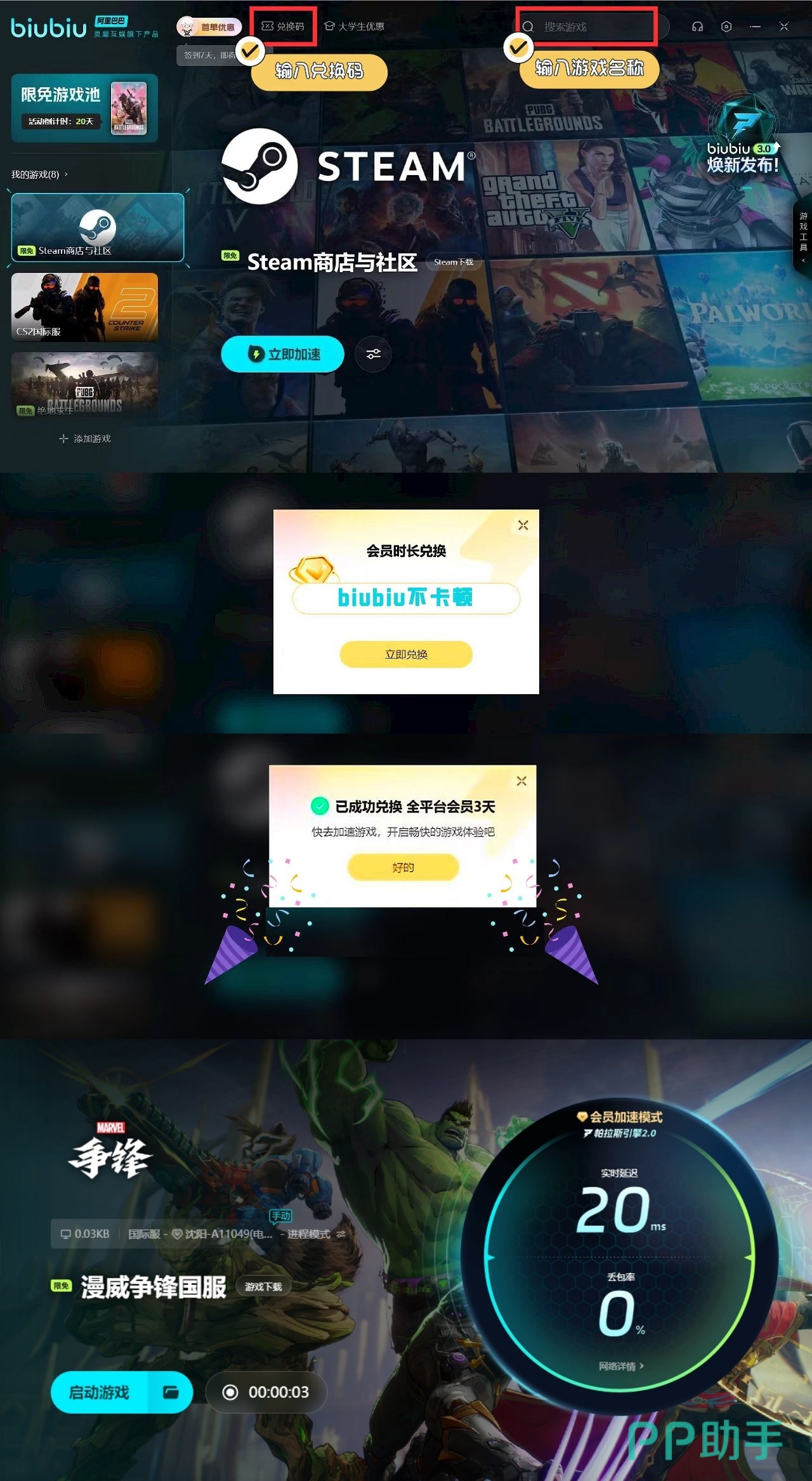在检查之后如果也确定文件完整的话,那么大家就要考虑是不是网络不够优质所导致的,这个时候玩家们可以尝试使用biubiu加速器进行解决。现在biubiu是会给大家更多的福利加持,新用户在第一次注册结束之后,能够免费体验3小时,另外玩家们还可以凭借【biubiu不卡顿】这一口令得到免费的72小时加速时长,能够与之前的新用户福利叠加在一起使用,长达75小时的加速机会直接送给大家。