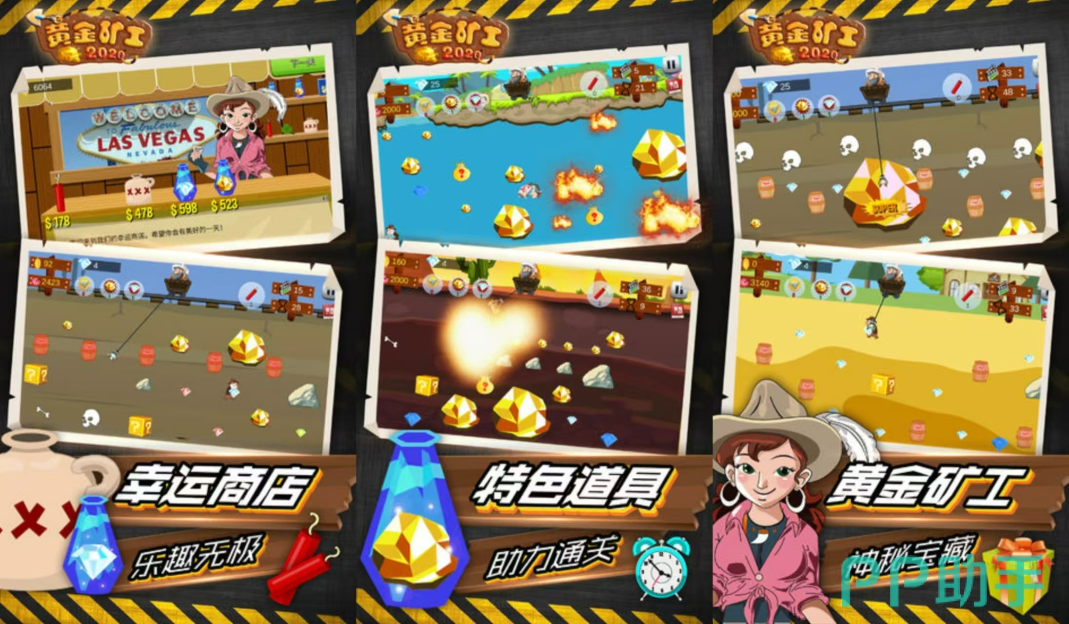 《黄金矿工2020版》是一个卡通可爱画风的游戏世界,作为一名黄金矿工的身份开始发财之路,玩家的工具是一把钩子,需要准确的控制钩子的角度和方向。当看到金子好的时候需要快速的去抓取,还为玩家提供了很多道具,每一个道具都需要用金子来购买,每完成一关都可以在商店中购买,等级越多可以挖到的宝藏也越丰富。