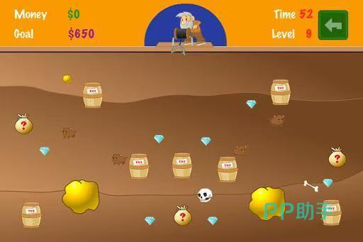 《黄金矿工》游戏的界面中会出现一位采矿的老爷爷,旷工需要利用工具对地下进行挖掘,可以从多个不同的角度和方向去挖,挖掘到的物品都可以获得金钱奖励,矿石分为大小不同的体积。在每一个关卡中金矿的分布都是随机的,在游戏开始之后可以看到时间要求,需要按照要求达到指定的金额才能通关。也可以选择使用道具,不同的关卡里道具用途是不同的。