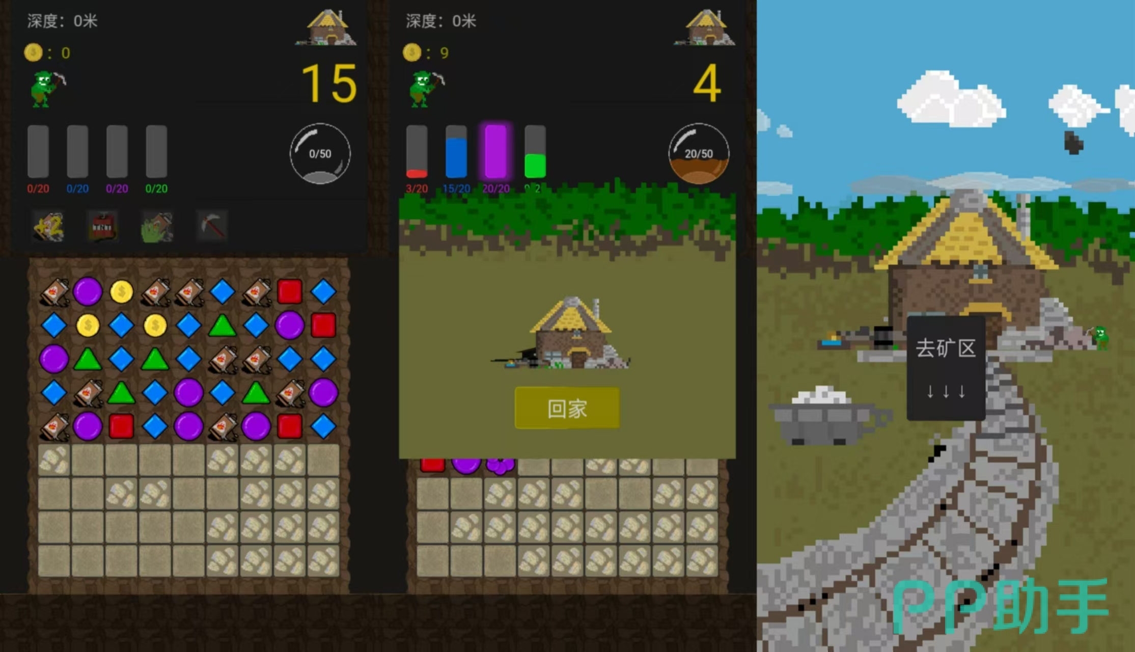 《抓金矿工》游戏中描绘了一个像素风格的世界,玩家将来到一个矿区,在游戏中需要做一项很危险的工作,需要打起满分的精神来。在游戏中会来到一个地下,有非常多的钻石和宝藏,这些钻石被石头全部遮挡起来了,玩家需要推开石头顺利的找到更多的钻石,其中的钻石拥有不同的颜色,需要按照每一个关卡的要求来收集相同颜色的钻石。