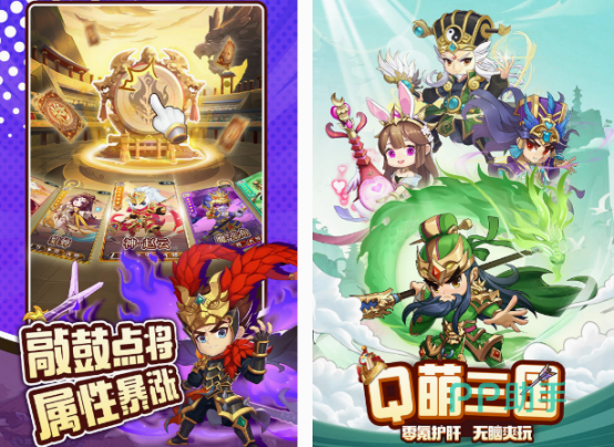 虽然这款融入了三国历史题材的游戏,它采用的是3d q版画面进行设计,不过却能让大家感受到放置卡牌策略手游所带来的独特魅力,更是融入了角色扮演游戏的让你。在进入了里面的世界以后,可凭借每个武将所具备的能力以及技能进行搭配的方式,战斗的时候取得胜利。除了游戏通过轻松升级的方式让你以挑战各种群雄,也有跨服竞技等模式,有机会与其他的玩家进行对决。
