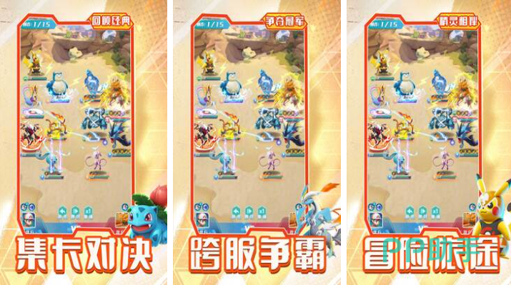 这是款融合了宝可梦、卡牌以及回合制玩法的竖屏操作手机游戏,神奇宝贝动画中的神奇宝可梦几乎全部出场,你也可以使用丰富的捕捉宝可梦的道具抓捕这些小精灵,更有PVE模式以及跨服争霸赛等有趣玩法期待大家挑战,极其有趣的冒险、抓宠物玩法令人印象深刻,酷炫的特效加持也大大提升了这款宝可梦游戏的观赏性。
