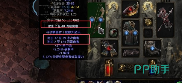 还需要学习鬼魂之舞,就能获得更长的续航时间。若是学习战斗狂怒的话,就能更快充能让你源源不断的释放闪电。搭配上清晰辅助的话,更快回蓝。对于武器的话,要选择能够增加攻速以及闪电伤害的弓箭,若是帽子的话就叠加抗性就好,进一步增强自己的生存能力。
