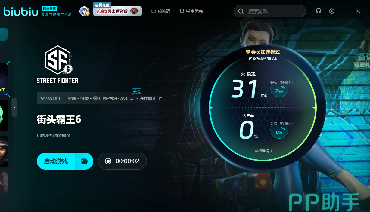 街头霸王6目前来讲的话仍旧没有上线国服,想要与全球内的玩家一起较量一番。就得用上biubiu以后,就能获得参加全球格斗比赛的资格。新用户的话可领取3小时的免费加速,另外新老用户输入【biubiu不卡顿】,便能额外获得三天免费加速。如果开启得到比赛时太卡,可能连比赛场景的页面都加载不出来。用上加速器后,才能让你顺利进入相关场景里开始你的较量。