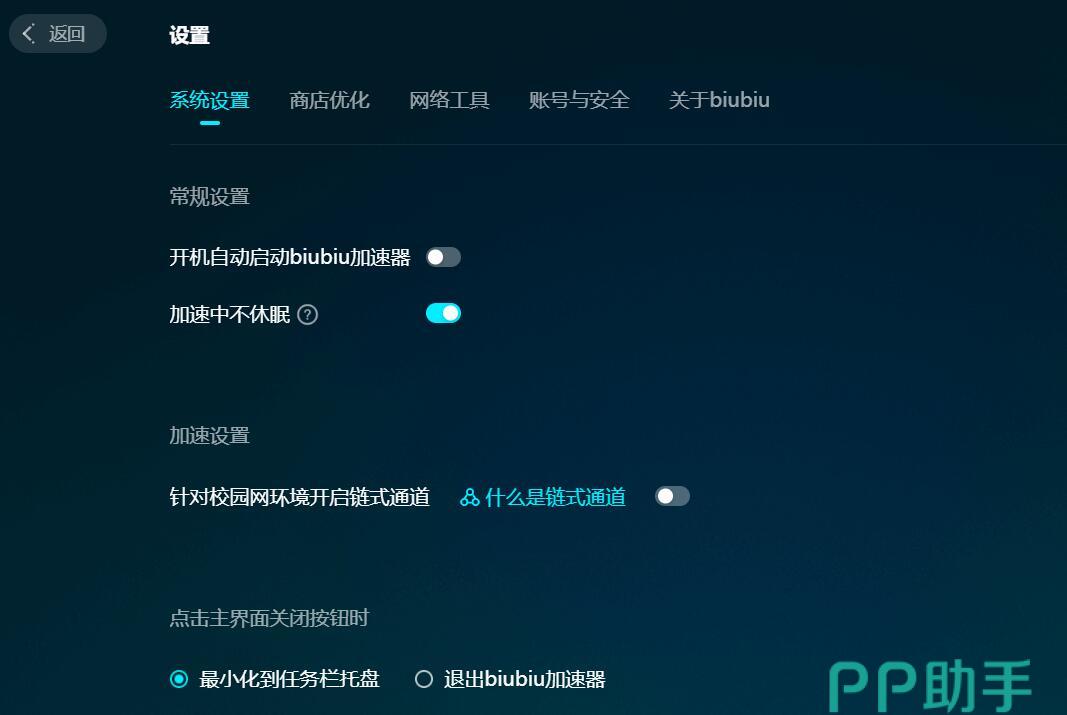 除了基础的游戏加速服务外,平台还为软件安排了许多功能,如果你经常给主机设备加速,那么可以开启加速中不休眠的选项,这样就不用担心应用突然关闭,导致游戏断线了。要是你是住在校园的大学生,开启链式通道,就能改善你的校园网,让你在一个更稳定的环境下游玩了。