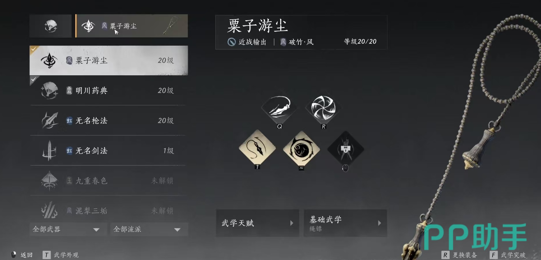 在燕云十六声中,玩家可以使用数量非常多的武器进行战斗,每一种武器都有自己独特的武学和相应的战斗招式,栗子游尘就是绳镖武学之一,今天小编来讲一下燕云十六声栗子怎么玩。这是游戏中出现的全新武器绳镖具有的武学名称,因为出现的比较晚,所以很多玩家还不了解。