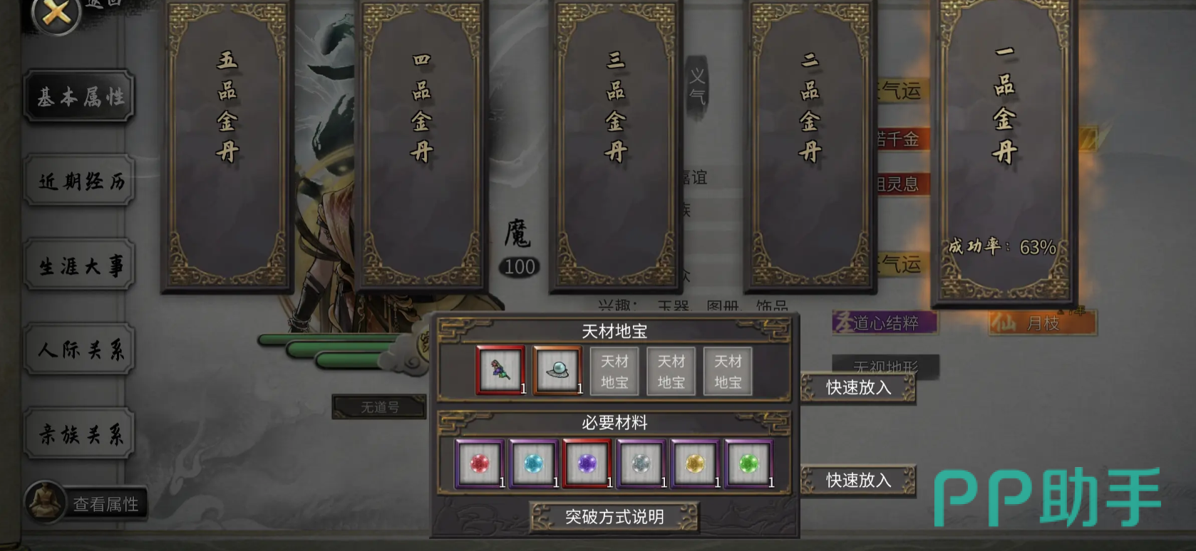 然后介绍第三种方法,使用炼妖壶让壶妖进行历练,历练的类型要直接选择第三个,就是能够获取技艺书以及灵果的那个选项,这种也能慢慢积累该材料的。第四个方式,主要是在没有宗门时,可进行突破。