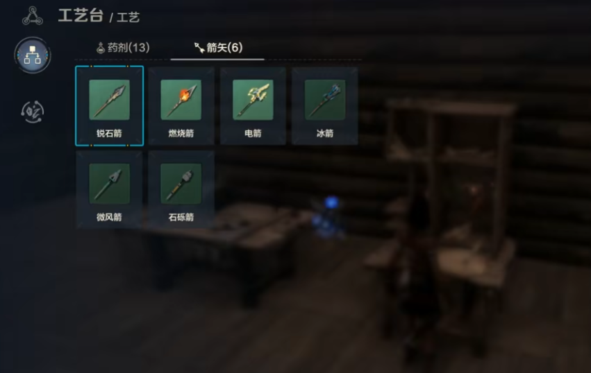如果大家想要制造燃烧箭的话,就可以先做主线任务。然后解锁了新的工艺台功能之后,就可以在上面打开当前可以制作的武器图纸。其中就包含着燃烧箭,点击之后就可以查看所需花费的材料了。接着再点击制造,基本上只需要花费几秒钟的时间,就可以做完了。