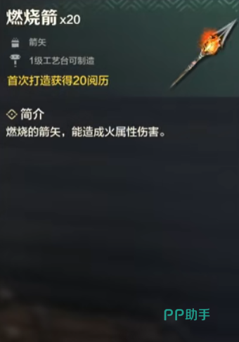 相信大家只要看了荒野起源燃烧箭消耗材料一览,也可以自己在工艺台上快速的制作一大堆的燃烧箭。因为燃烧箭作为我们最常用的箭矢之一,若是利用好之后,不仅可以更快击败强大的boss,又能够轻松完成各种解谜宝箱以及关卡,让我们更快获得大量奖励。