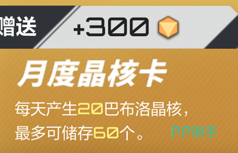 并不会直接给到大家,这和传统二游一样,在该游戏中月卡充值后会先给到一个300晶核的奖励给到大家,随后会按每日赠送20晶核的机制去慢慢的赠送剩下的600晶核,这就代表玩家每天都要登陆游戏。