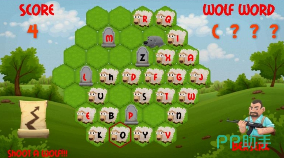 人们要在这部作品里守卫自己的羊圈,它提供了一个类似跳棋的棋盘,上面共有羊和狼这两种棋子,只要人们用羊围住狼,那猎人就能开枪带走狼。羊只能一步一格进行移动,而狼除了能一步一格外,还能将羊作为跳板来作为移动,并以此来将羊吃掉,所以即便羊的数量比狼多,在游玩时依旧很看人们的操控水平,唯有让狼动弹不得才算彻底围住。