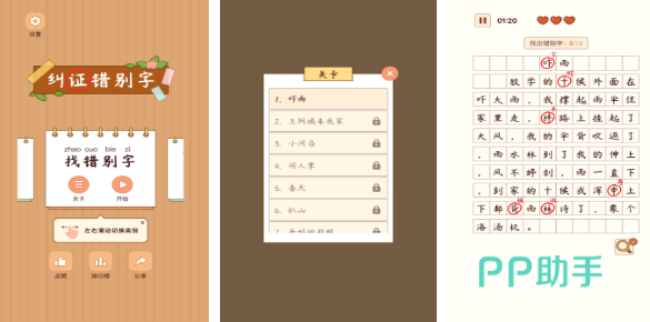 你是不是写作文的时候,经常会写错字,那这款早茶游戏,你可不能错过!因为系统会给到我们很多文章,需要玩家在整篇文章中找出那些错别字,并将其点击圈出来,另外还有古诗主题的玩法,也是找错字。游戏是有时间限定的,你能不能在规定的时间内完成找错字挑战呢?