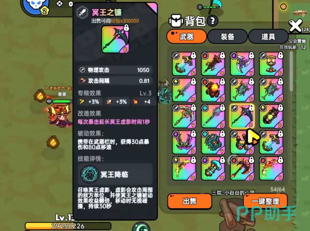 例如冥王之镰,当你将其放置在武器栏里,就可以获得高额的移动速度加成,并能获得冥王虚影,更快击败前方对手。如果己方的公会分数已经很高了,那就可以保持防守状态。换一些能增加防御以及血量的装备。