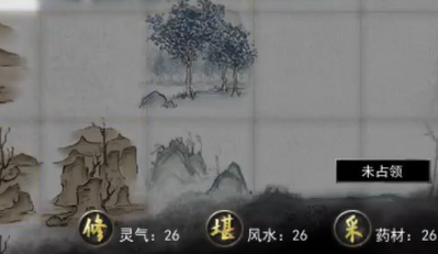 简单来说,堪舆就是鬼谷八荒里的风水探测器。它位于游戏界面右下角一个写着【堪】字的小按钮,随手点一下,就能进入“堪舆模式”,解锁大地图上的隐藏信息。在堪舆这个家族里,还有其他三个好兄弟分别是:【修】吸收灵气、【采】采药材、【挖】挖矿石。