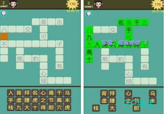 2、《成语填字接龙闯关》