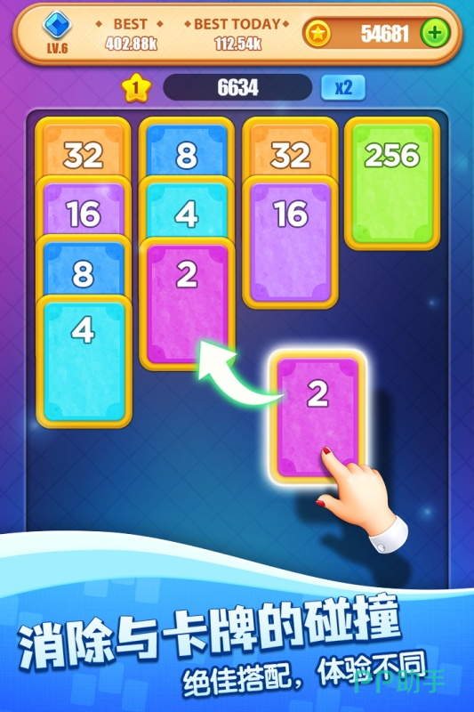 《开心合数字》这款游戏将卡牌和数字消除结合在了一起,玩家的操作模式类似蜘蛛纸牌,将相同数字的纸牌挪动就可以进行合并。因为玩法异常简单易懂,所以游戏在其他的方面进行了创新的设计,不只是主题和纸牌的外观,更有非常酷炫的消除特效以及顺滑的操作手感来给玩家打造舒适的游戏之旅!