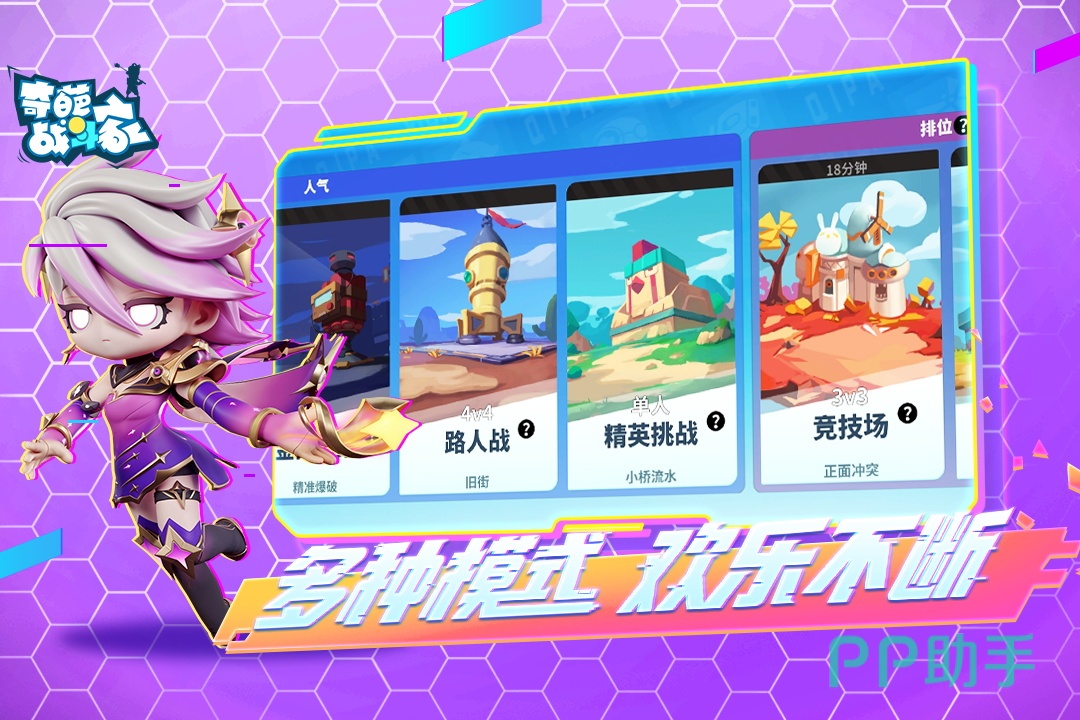 想要玩到创新玩法的你,可以看一下这款五分钟就能打完一把,超快节奏MOBA游戏!游戏最大的亮点就是奇葩,不仅武器非常搞怪,有人字拖,还有榴莲、滑板等, 而且英雄角色也是卡通抽象风格,玩起来特别搞笑有意思!如果你玩腻了传统模式,还有路人战、精英挑战等玩法哦!