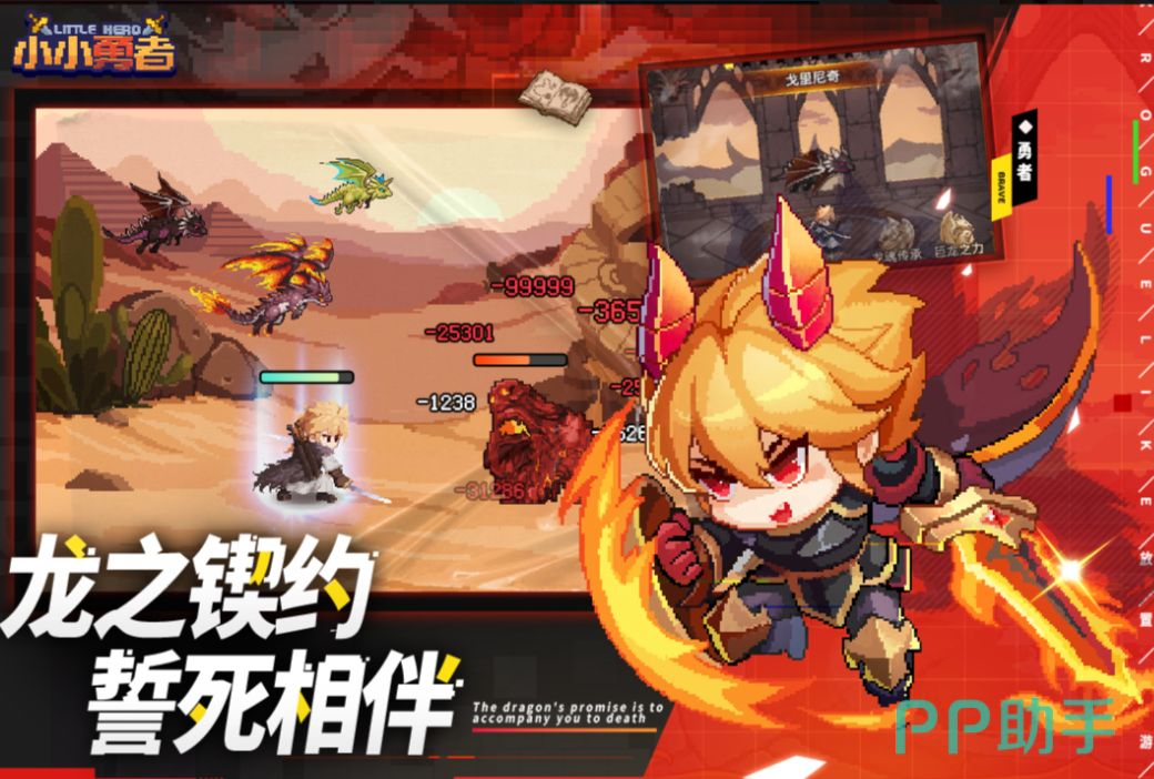 这款游戏以像素画风来展现每个角色和场景,更给予你视觉上的震撼。游戏里你就是勇士,可以挑战副本关卡里的各类怪物boss,从而获得奖励资源。游戏圆满你想养宠物的梦想,且这些宠物可不只是会卖萌,还可以帮你对敌人发动攻击。游戏的画面场景非常之多,这是为了让你的双眼得到足够的惊艳。