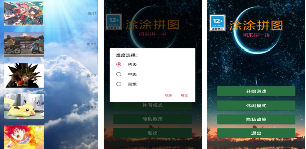 在这款拼图游戏当中玩家们可以选择初级到高级不同的等级,也可以选择“休闲模式”,在休闲模式里面每一个关卡都没有时间限制,在每一个类别里面都有海量的拼图素材,玩家们可以去选择自己喜欢的图片,在选择难度之后就可以开始拼图啦,如果是正在寻找单机拼图游戏的朋友们可以去尝试一下这款。