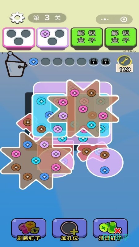 作为一款绝对解压的游戏,这款游戏采用的是比较清新简约的画面,玩家需要准确无误的判断螺丝的位置,然后将它们顺利的拆除。因为一个失误或者是看走眼,都可能使得螺丝掉不下来。游戏里面还会对收纳箱进行设计,可以将颜色不同的螺丝放置在不同的收纳箱中,游戏的各种操作还是比较简单明确的。