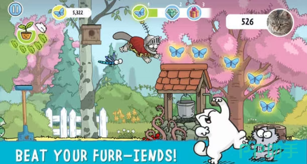 《西蒙的猫跑酷》就是一个非常经典的跑酷模式,同时还让玩家可以进行一个收集的趣味玩法,玩家在游戏中需要扮演一个可爱的小猫,每一个玩家都可以收集小蝴蝶,可以在游戏里面选择一名心上人,有很多可以进行约会的剧情。游戏里面的场景也是非常优美的,在每一个关卡里面都有着不同的地形,玩家需要想办法通过这些障碍,还有一个猫咪花园,解锁以后也可以进行游戏。