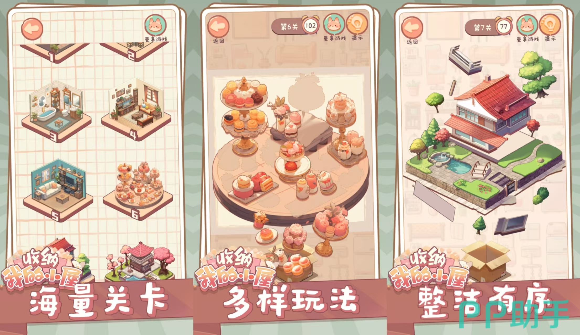 《收纳我的小屋》拥有一个温馨简约的卡通风格,游戏场景中拥有着各种不同的小房间,在每一个关卡中房间的物品都会随机的打乱,需要玩家来把他们放回原先的位置。每一个房间有着不同的布局和规划,需要在一个特定的时间内尽量的去移动物品,如果玩家到达时间还没有收纳好游戏需要重新开始,在收纳完整的过程是非常解压的。