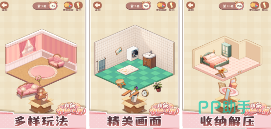 这是强迫症的福音,完成游戏之后能够轻松解压本身杂乱无章的家,在你归纳之下,变得井然有序。游戏有清新的画风,精美的家居及可爱的小屋,可以将各种物品摆放到适合的位置,亲自动手,将小家布置的清新又整洁,虽然整个玩法比较简单,却足够清晰,有相当治愈,多样化内容等你来畅想,最重要的是无需联网,可随时随地体验。