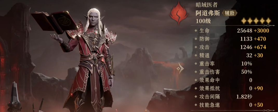 阿道弗斯,紫火盾,特点是群体护盾和拉条,pve和pvp全场景适用,采用三只耳套装,属性方面在能站得住的前提下主堆领悟和攻击,是火毒体系的次选。